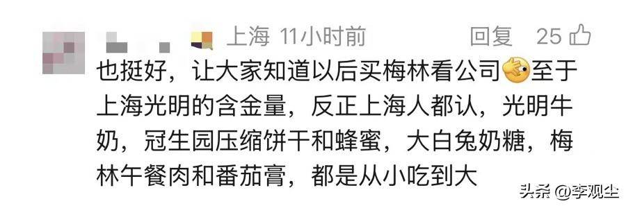 终究上海梅林做为肉业旗下焦点品牌,早以午餐肉、蜂蜜等产物走进千家万户,加之还具有“大白兔”“冠生园”等国平易近级子品牌,正在心里,“梅林”几乎等同于系的质量。